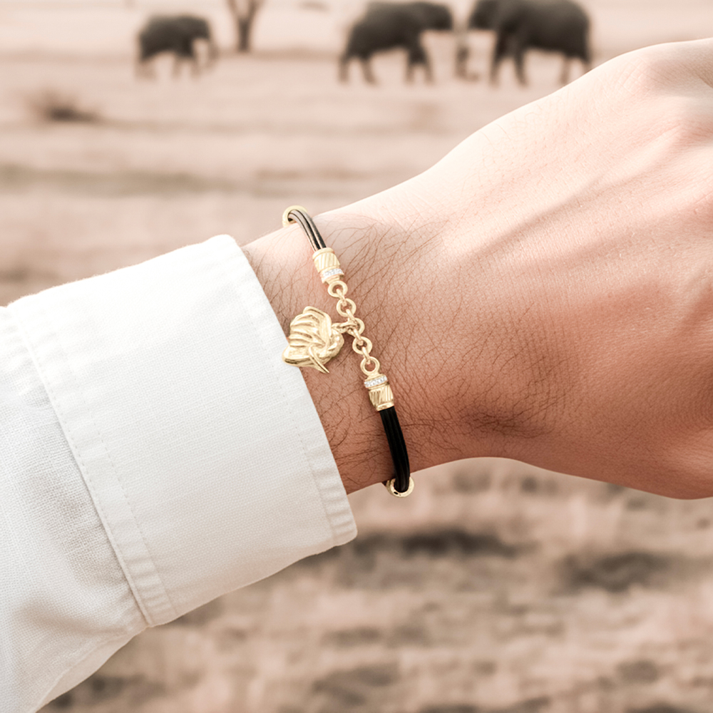 Inspiré de sa sculpture emblématique, ce bracelet capture l’essence de l’éléphant : puissance, sagesse et intemporalité. Réalisé en or et rehaussé de diamants, il se distingue par l’intégration subtile de poil d’éléphant, matière rare, symbolique et profondément chargée d’histoire. Chaque détail est façonné avec exigence, donnant naissance à une pièce qui n’est pas seulement un bijou, mais un manifeste : celui du lien entre l’art, la nature et le patrimoine.