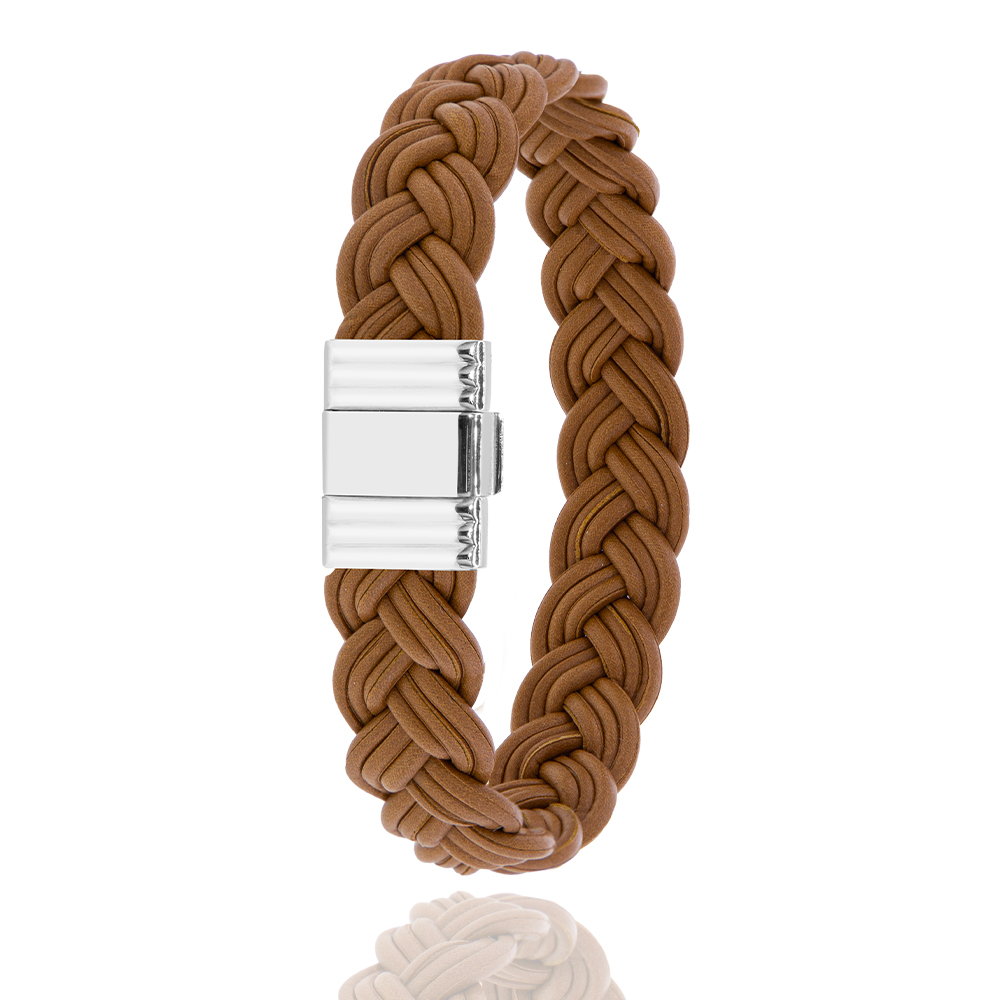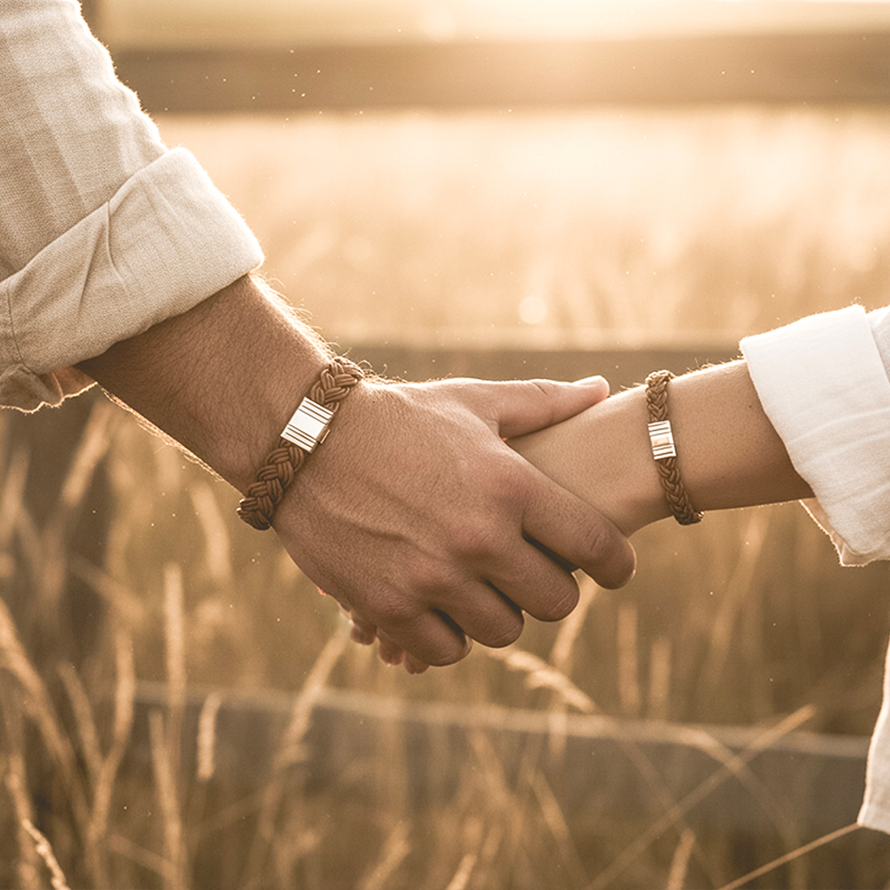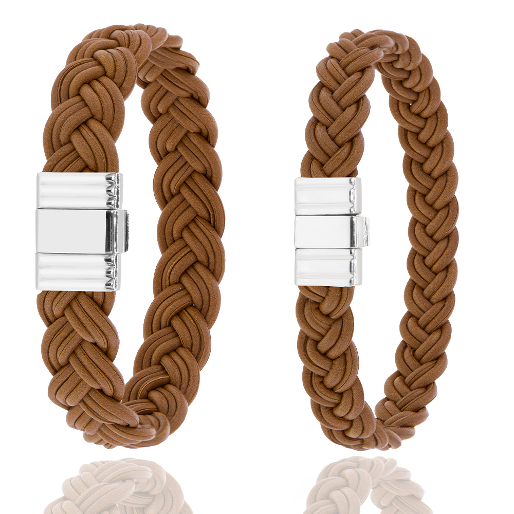 Fabriqués en acier et en cuir de pomme tressé, ces bracelets allient robustesse, élégance et innovation durable. Leur texture tressée apporte une touche raffinée tout en restant intemporelle.