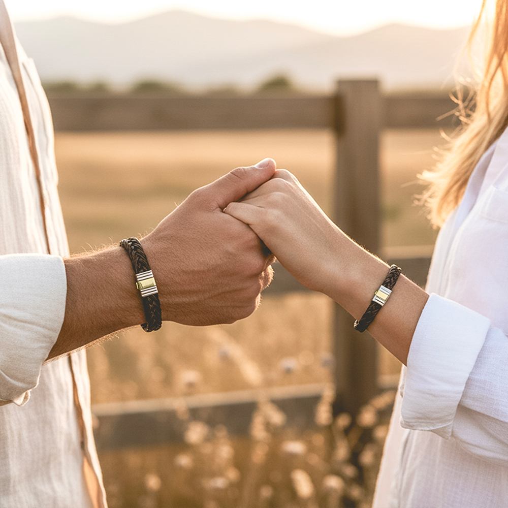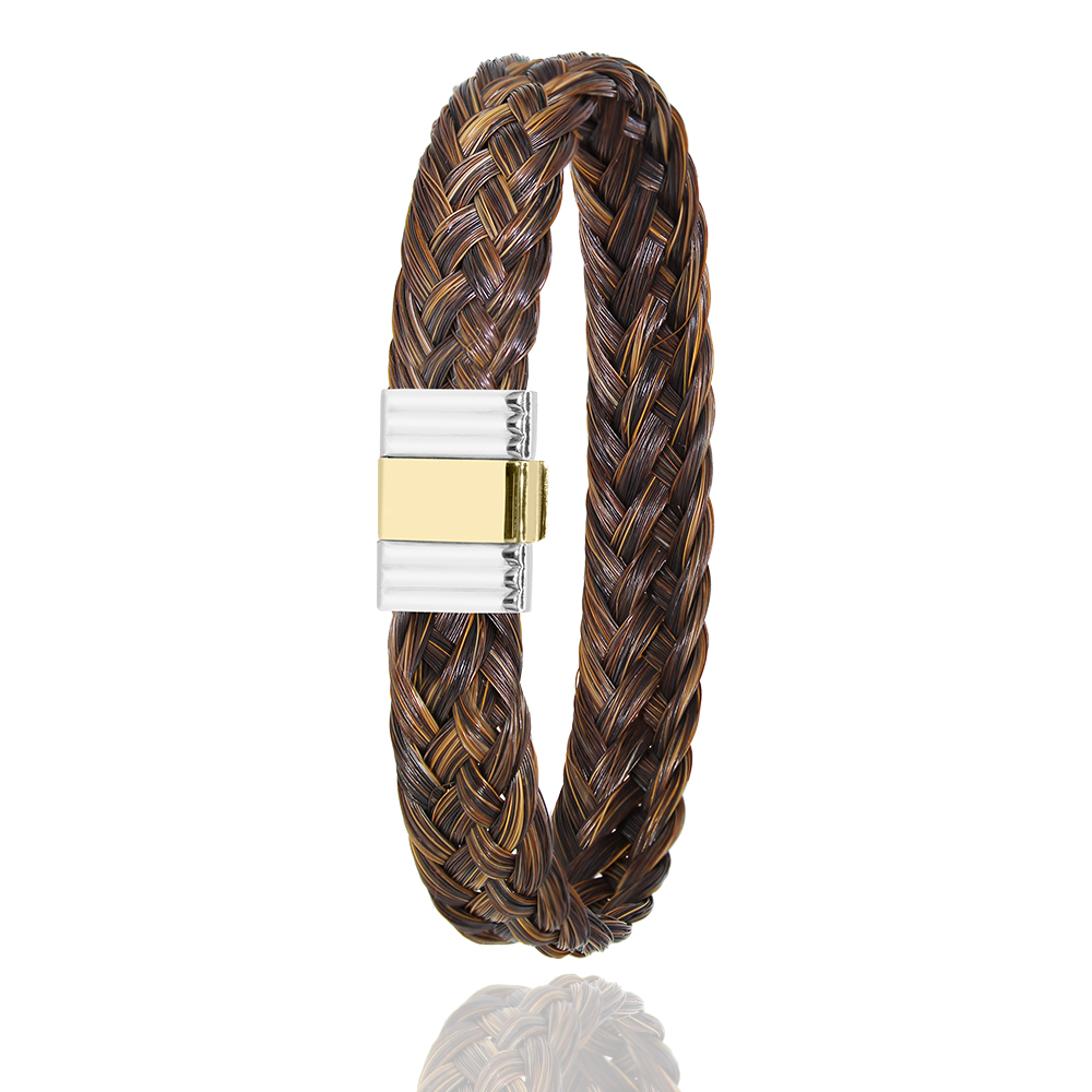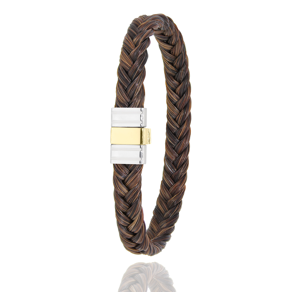 Le Coffret Duo Nokota réunit deux bracelets emblématiques : le bracelet Nokota et le Mini Nokota, pour un duo harmonieux et intemporel. Confectionnés à partir de crin de cheval tressé, symbole de liberté et de force, ces bracelets sont sublimés par des finitions en acier et or jaune 18 carats, alliant authenticité et raffinement.